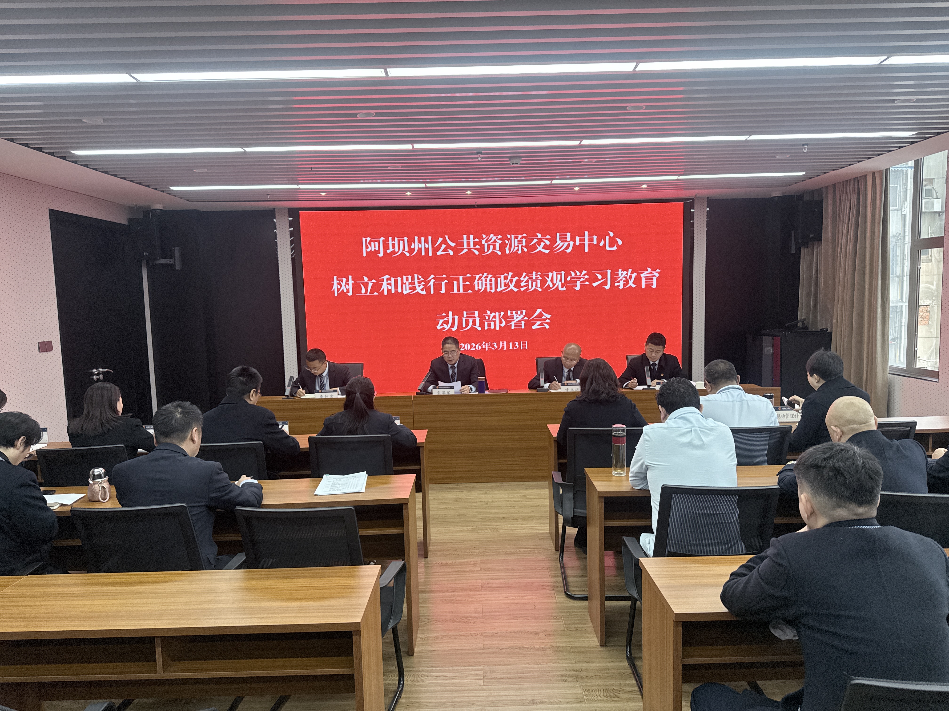 3月13日下午,州公共资源交易中心在成都开评标区召开树立和践行正确政绩观学习教育动员部署会,全面启动树立和践行正确政绩观学习教育工作。会议深入学习贯彻了中央、省委、州委有关树立和践行正确政绩观学习教育的文件、会议精神,按照州委相关工作安排,部署了中心开展树立和践行正确政绩观学习教育工作。