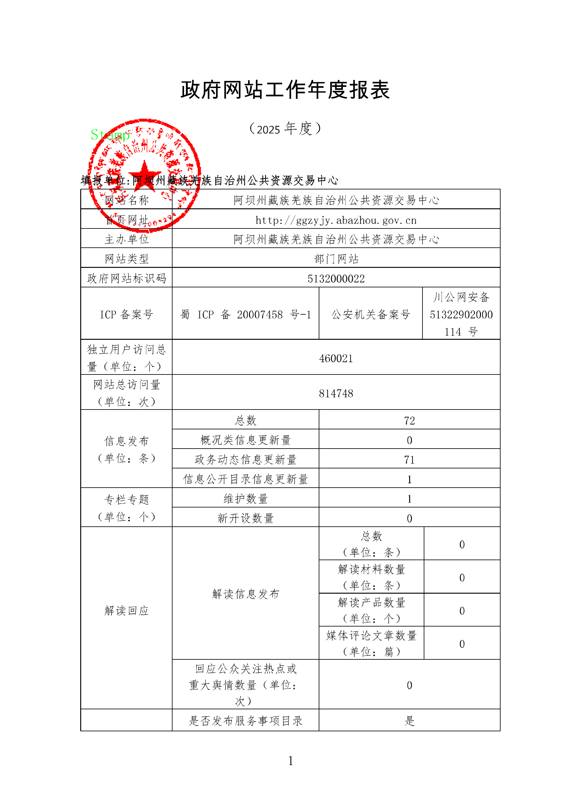 阿坝州公共资源交易中心2025年度政府网站工作年度报表